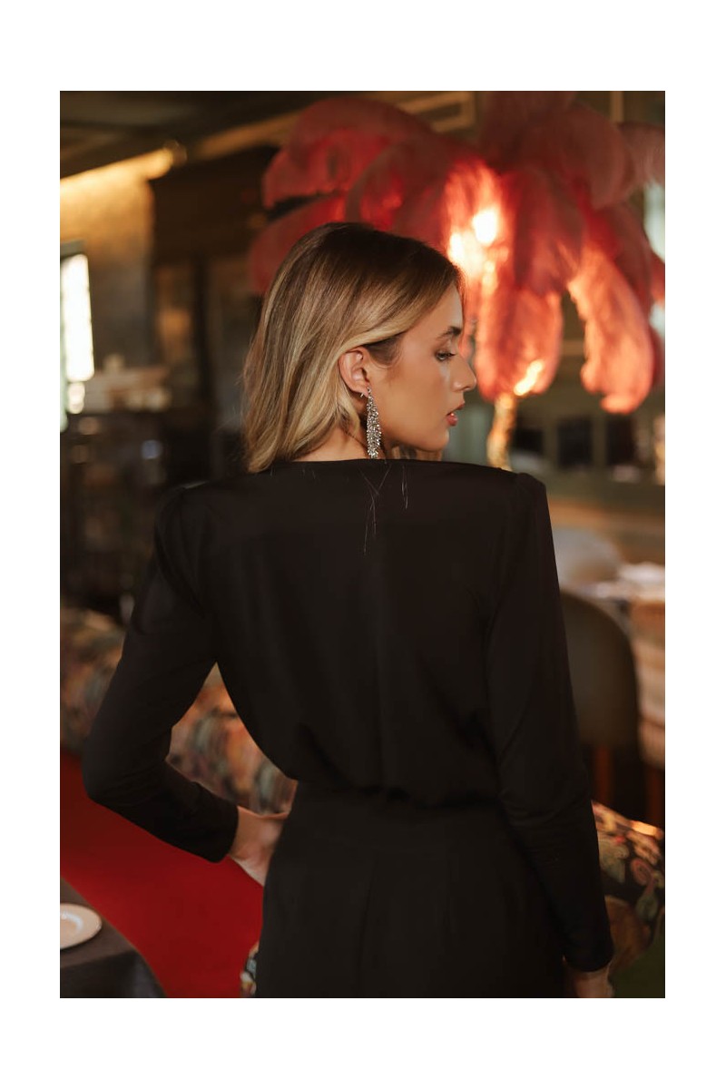 El body Mira está confeccionado en tejido de punto con escote cruzado. Detalle de maxi hombreras. Parte inferior con corchetes para abrir.