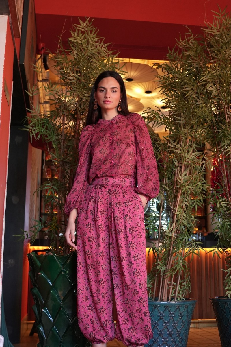 El Pantalón Varo bombacho es una prenda sofisticada y actual, diseñada para mujeres que quieren un look elegante sin renunciar a la comodidad en eventos especiales. Confeccionado en tejido bambula de raso, destaca por su tacto suave, ligero y su caída fluida, aportando un acabado refinado y femenino.